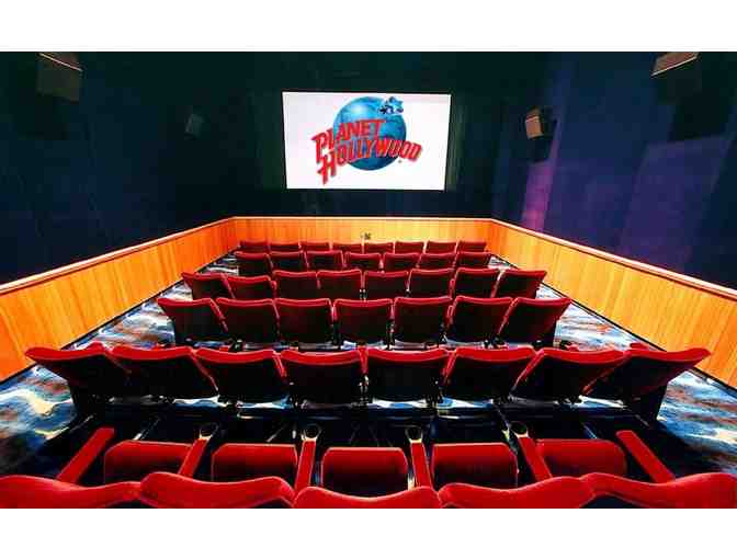Perfect for a party, reunion, or work event, enjoy dinner with nine of your guests in one of Planet Hollywood’s private screening rooms! Including dinner, unlimited soft drinks, and dessert, dine at this big and bold restaurant where movie blockbusters and memorabilia take center stage with you!