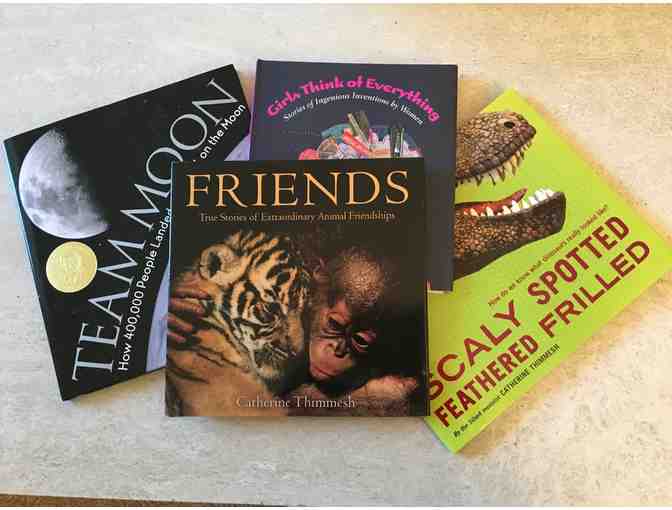 Delightful and Informative Suite of Four Non-Fiction Children's Books by award winning Author Catherine Thimmesh. Covering topics including dinosaurs, space, inventions and animals, these hard cover books are beautifully written and illustrated. All the books are personally autographed by the author.