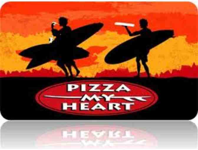 Craving pizza? This certificate is for 1 free large pizza. Also included are 2 cards for one free slice each from Pizza My Heart!