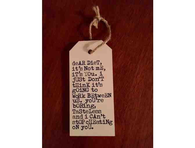 The perfect desk plaque or wall hang for all of us who know what it's like to diet (or not!)