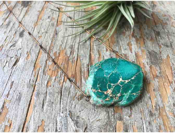 "Antiqued" Brass bar chain with one-of-a kind slab of Aqua Terra Jasper.