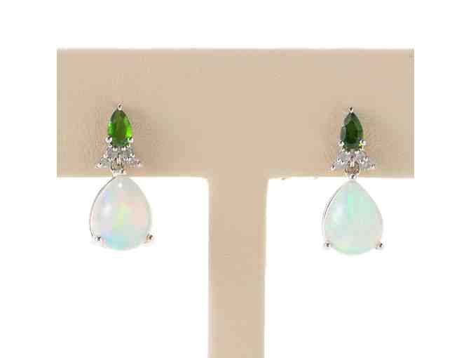 SS Opal, Chrome Diopside & Diamond Earrings