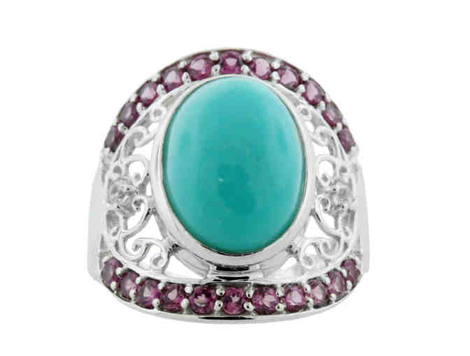 SS Sleeping Beauty Turquoise, Rhodolite Garnet & White Zircon Ring