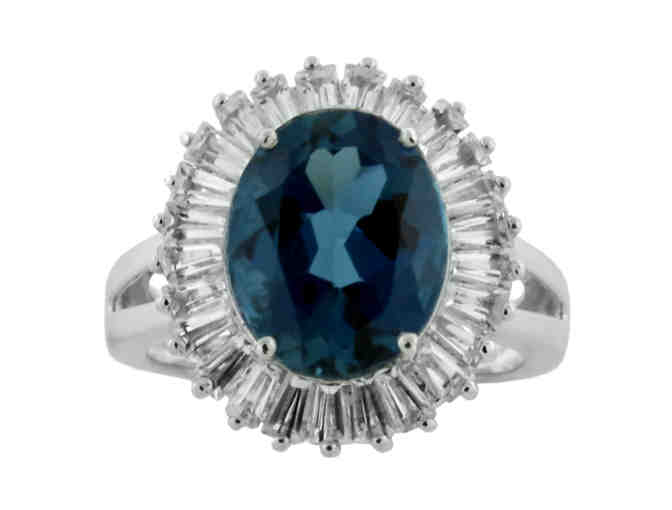 Beautiful Dark Blue Topaz set in Bagguette petals of White Topaz
