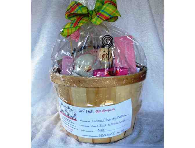 Gift Basket and $25 Gift Certificate to Paint Rust & Pixie Dust, a Home Decor and Gift Shop located at 14 Center Street in Easton.