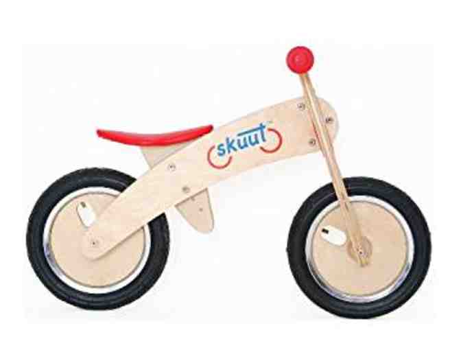 The Skuut is a wooden bike for children ages 2 - 5. It has no pedals and no training wheels. Children kick off the ground as if running, thus pushing or "skuut-ing" themselves and the bike forward. The Skuut is perfect for learning balance, steering, coordination and independence. Having mastered balance on the Skuut, the transition to a traditional two wheeler bike is easy.