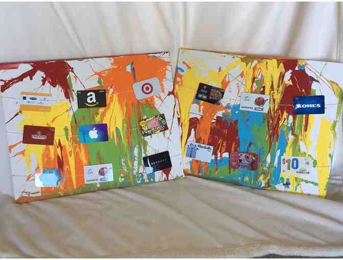 The students have created a beautiful splash art masterpiece on a 16” x 20” canvas. In addition to this artistic effort, they’ve included gift cards to many local stores.