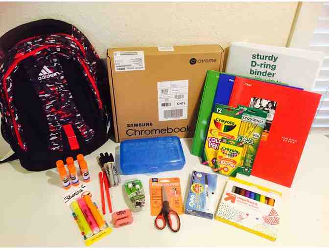 We’ve made your life easier and taken the hassle out of shopping for school supplies! Win our auction item and you will not have to purchase school supplies in the Fall. Mrs. Ramirez's second grade class has put together a backpack filled with all the items needed to start 3rd Grade. Included in the treasure: Samsung Chromebook 3 in metallic black with an 11.6" HD screen, 16G HD and 4G memory, PLUS backpack, binder, folders, headphones, glue, pencils, markers, erasers, and MORE! This classroom treasure is valued at $275