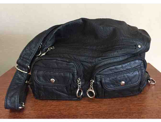 Black convertible purse: can convert from shoulder bag to backback or a crossbody bag.