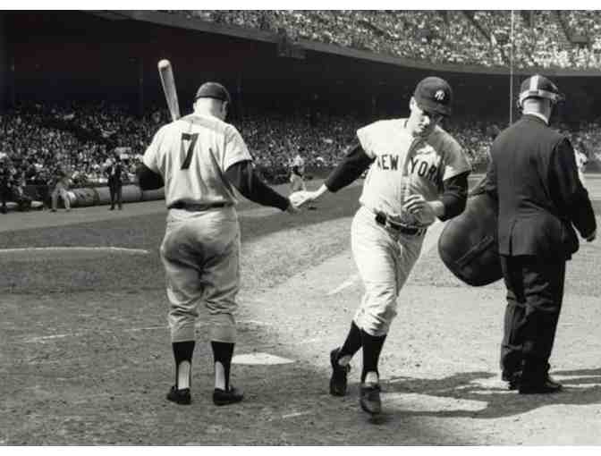 Limited edition unframed photo of "Handshake, Mantle and Maris" by photographer Arthur Rickerby. Size 16" x 20". #12/60. In this picture, taken during the 1961 season, Roger Maris and Mickey Mantle are locked in a heated race to try to break The Babe's single season home run record. We all know how that ended. It is rumored that this picture was taken the day Maris surpassed Mantle in the home run count. And if not, it's still a good story to tell.