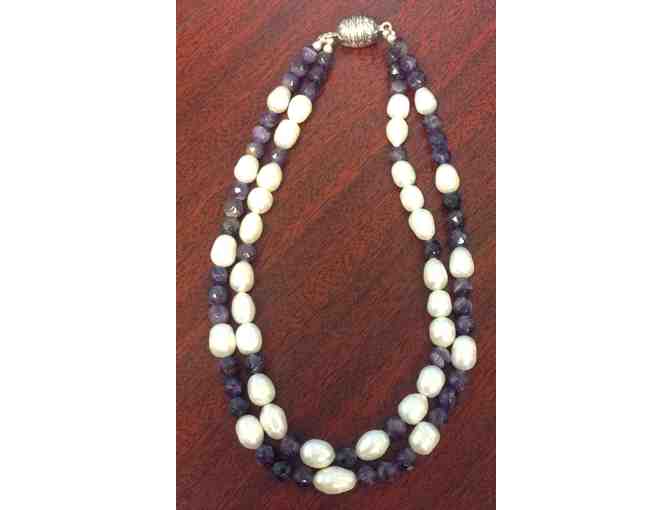 With pearls and facetted amethyst beads w ith magnetic clasp