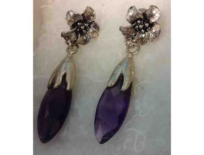 Earrings - Amethyst faceted tear drop with sterling flower earrings