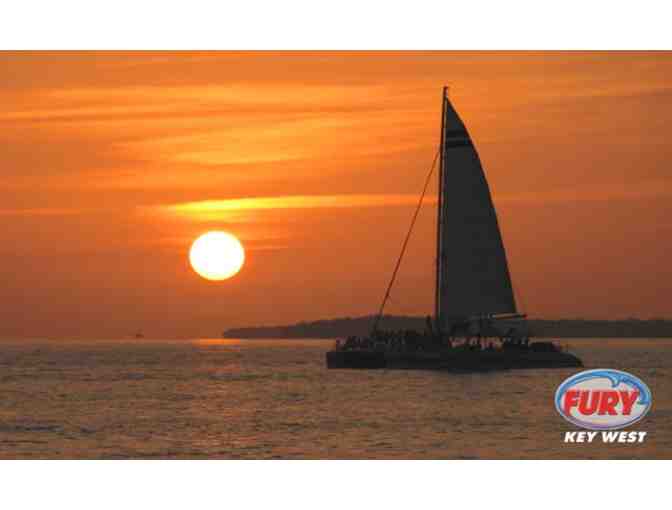 Fury's Commontion on the Ocean is Key West'a original and most popular live music sunset sail. Local and nationally known musicians are rockin' the boat with appetizers, margaritas, and live music! Leave your worries behind and sail off into Key West's famous sunset aboard our spacious catamaran. Dance on deck, indulge in complimentary appetizers, margaritas, beer and wine and raise your glass of champagne to toast another perfect day in paradise. Reservations are required. Based on availability. Subject to blackout dates. Not for resale/no cash value