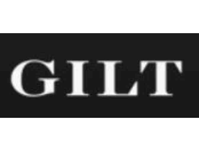 Gift certificate for a $250.00 shopping credit to Gilt.com. Gilt provides instant insider access to todays top designer labels, at up to 70% off retail. Become a member and find something new every day for women, men, kids and home as well as exclusive local services and experiences and luxury travel. www.gilt.com