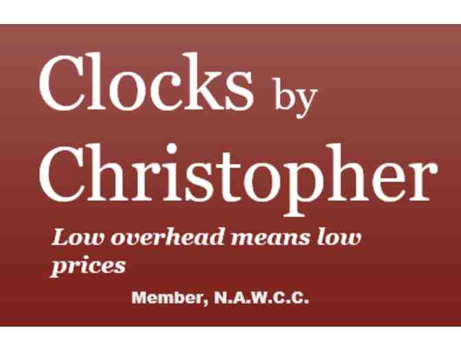 Clocks by Christopher is a full service and sales clock shop. They buy and sell mechanical clocks, ranging from antique (1800s to 1920s) to vintage (1930s to present). The clocks they sell have been dismantled and cleaned by hand and have been run for at least three weeks before they are offered for sale. They offer a one year guarantee on all clocks, provided they are properly handled.