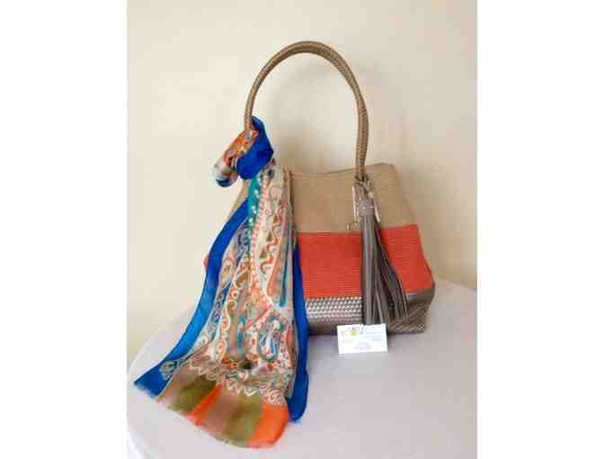 Beautifully hand-crafted summer tote bag and desiger scarf. These beautiful accessories give style and panache to any outfit!