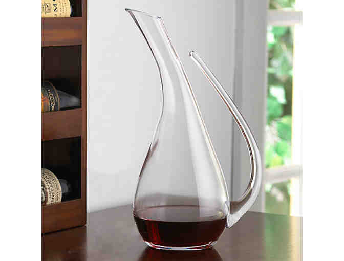 Elegantly tall, curved and tapered, the balance and pour of this mouth blown decanter is sure to please the most discriminating oenophile, the fluid lines ones of beauty and grace. Lead-free glass. Dishwasher safe.