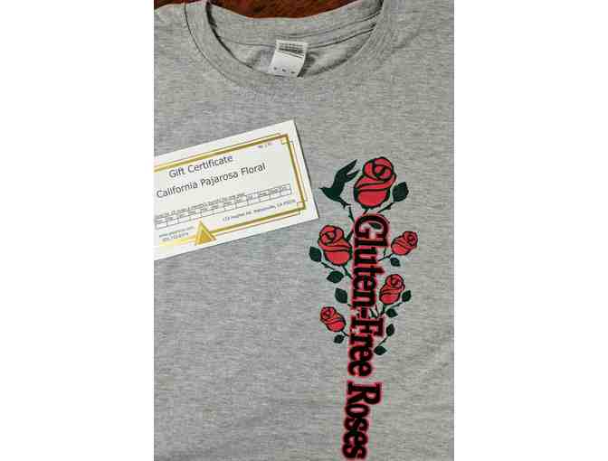 Gift certificate entitles you to one bunch of up to 25 roses per month for one year and a cool t-shirt (sz XL).