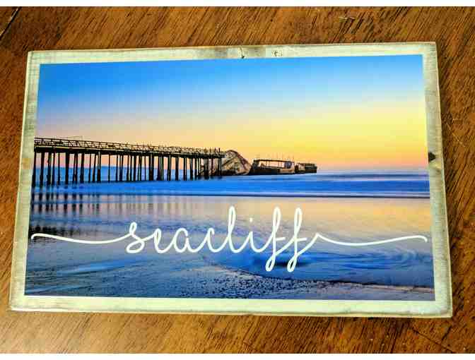 Beautiful artistic photograph of the well loved "cement ship" at Seacliff beach mounted on wood with antique finish. Approximate size 7.5" x 11"