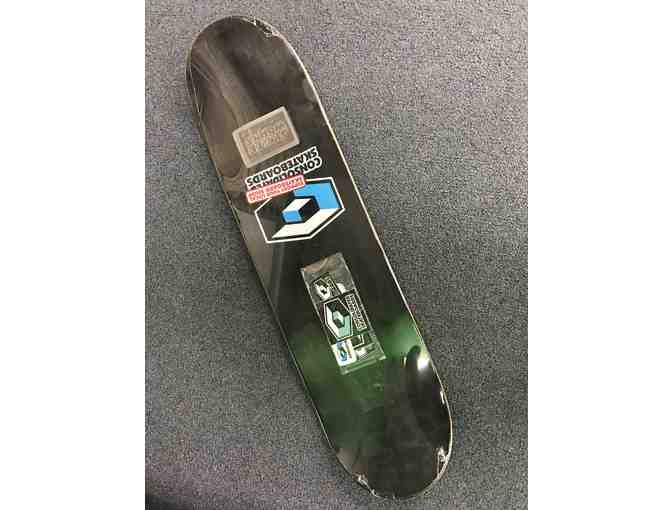 An awesome Consolidated skateboard from Skate Works which also includes a $100 gift card so that the winner can personalize the skateboard with wheels and trucks.