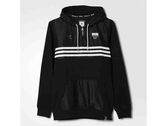 '90s hip-hop style influences this men's hoodie designed in collaboration with skateboarding brand DGK. climalite® fabric makes it a performer while fat serrated 3-Stripes and features like a gold metal-tipped hood drawcords give it a modern edge.