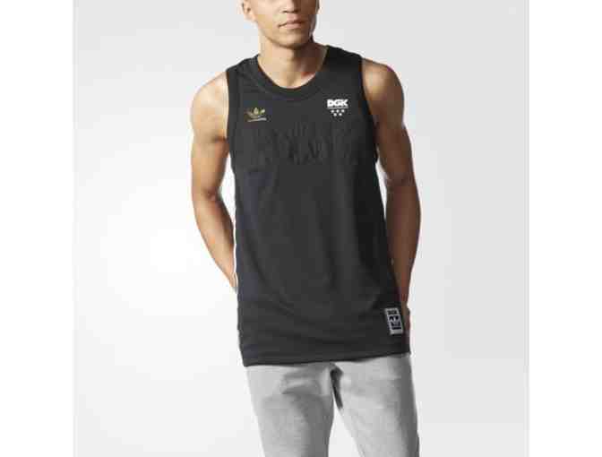 Like melding separate social circles over a good skate sesh, Adidas and DGK have finally collaborated on a line that emphasizes skate specs and classic basketball style. The Adidas x DGK Jersey Tank has all the features you need and want. It comes with a U-neck, a ribbed collar, tonal woven DGK applique on the center chest, and a printed DGK logo on left chest. You’ve got yourself a piece ready for the parks, whether you're there for the ledges or the basketball courts.