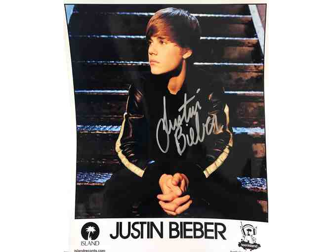 An autographed 8 x 10 photograph of a young Justin Bieber. This photo was taken around 2010