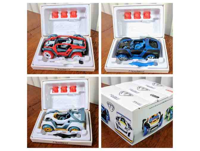 Rebuild the S1, T1 and X1 to make hybrids! Modarri's combo pack includes all three car models with their hex tools. You'll also get eight racing cones. - See more at: http://modarri.com/product/combo-3-pack