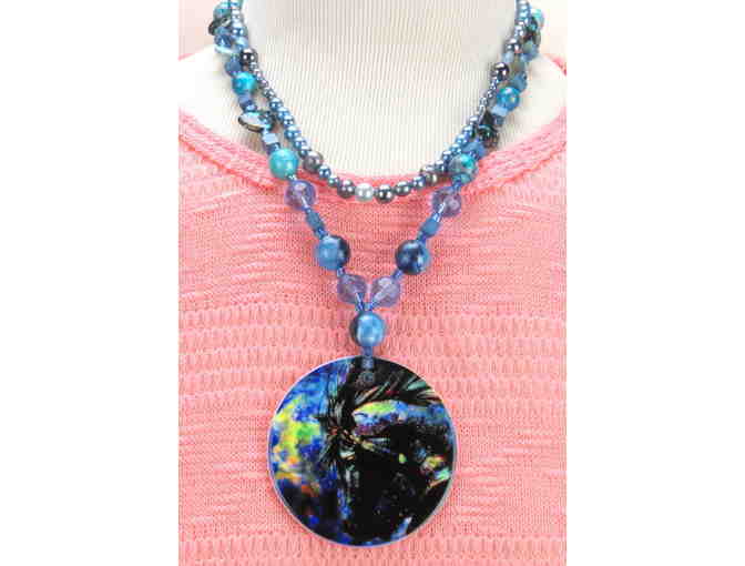 - FEATURES: "Thundering Hooves" Porcelain Art Pendant, Pearls and Turquoise