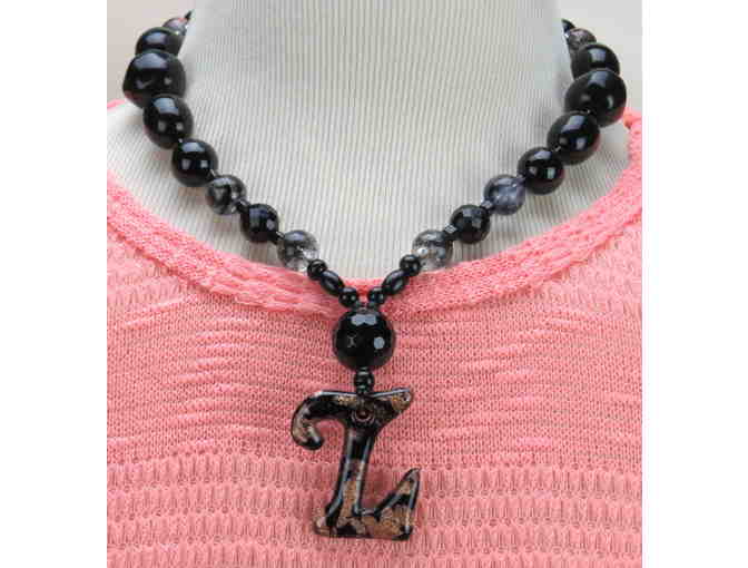 #745: 1/Kind Necklace with Semi Precious Gems! Unique "L" Initial Pendant