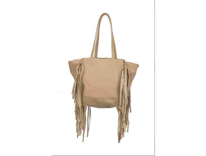 About the Cleobella Hendrix Tote: Leather tote bage/side fringe trim/ handmade in Bali 18" x 14"x 7"