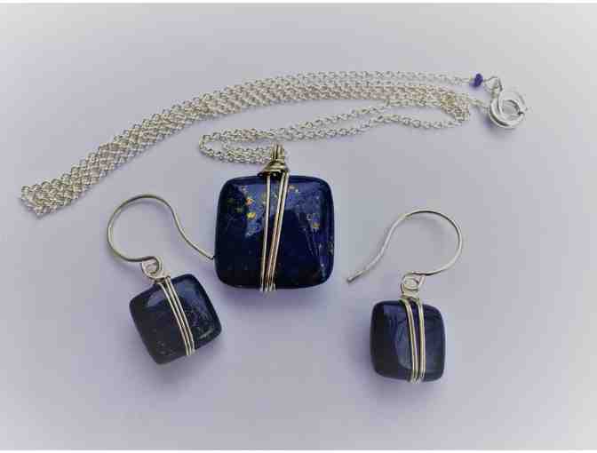 These earrings and necklace are made with a stunning blue lapis with sterling silver metals.