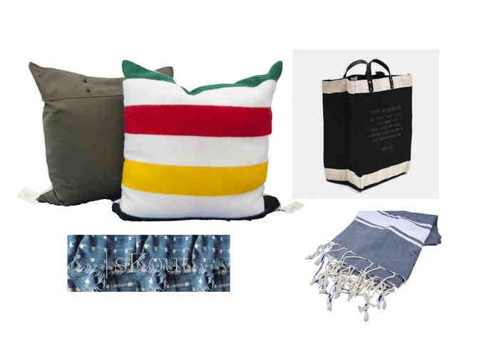 For Your Home - Vintage sKout pillows, Indigo Fouta Guest Towel, and Market Bag