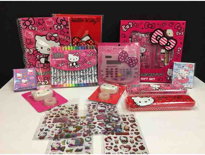 Enjoy lots of Hello Kitty items. Icluded are pencils, pens, notepads, stickers, calculater, tape dispensers and pencil cases.