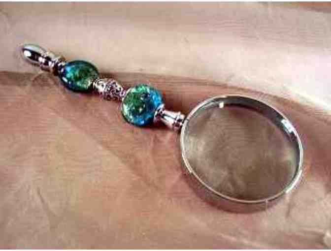The stars and moon kissed this charming magnifying glass. Proudly keep this glass in view as our charming desk accessory will to show off your truly discriminating taste at home or at the office! Pens can be refilled with standard cartridges available at most office supply stores. The essence of Deb Rich's artistic expression is revealed in each lampwork bead that she creates in her studio. Deb's beads exhibit her desire to create and inspire change through community outreach. These jewelry pieces are offered exclusively through cMarket to support the fundraising efforts of non-profit organizations. Lampwork glass reflects both the heartfelt passion and interpretative expression of Deb Rich. Her artistic resume includes fantasy sculptures, creatively fashioned from found-objects and recycled materials. Deb's Glass Designs are truly hypnotic, one-of-a-kind pieces that cannot be replicated or manufactured by a machine, so items may differ slightly from photos. Deb only sells jewelry pieces that capture the grace and flow of glass artistry. All jewelry is made with Bali style findings, Czech or Swarovski crystals, and various complementary beads, making Deb's Glass Designs positively the best choice.