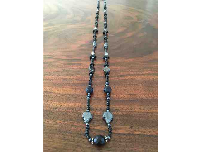Beaded Necklace made by Synergy Alum Nicolette Gamache. When unclasped, necklace is 40" long.