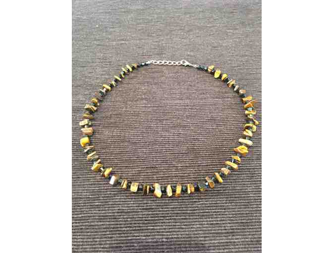 Beaded necklace made by Synergy Alum Nicolette Gamache. When unclasped necklace is ~16.5" long.
