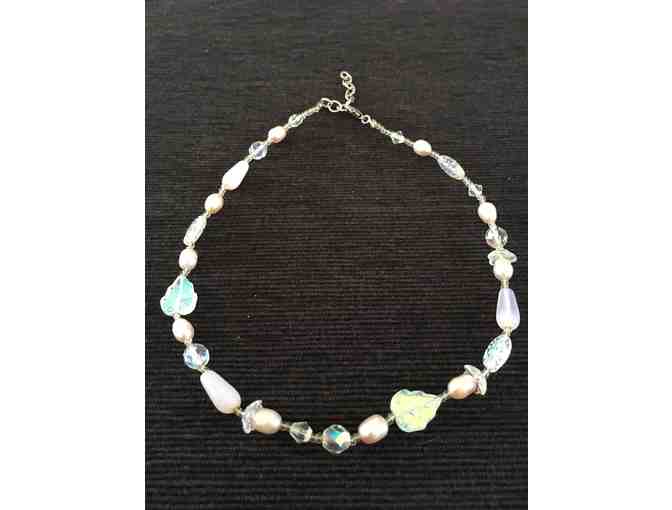Beaded necklace made by Synergy Alum Nicolette Gamache. When unclasped necklace is ~16.5" long.