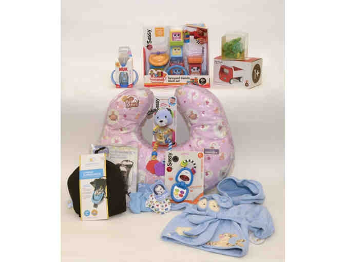 A bundle of delightful gifts for the new bundle of joy and proud parents! Contains: