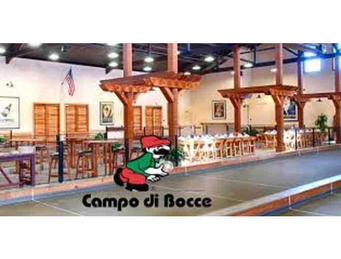 Bocce party, good for up to 10 guests, includes 90 minutes of court time, two large pizzas (on court only) and sodas for up to 10 guests. May be used at any of their three locations, Livermore, Los Gatos, or Fremont.