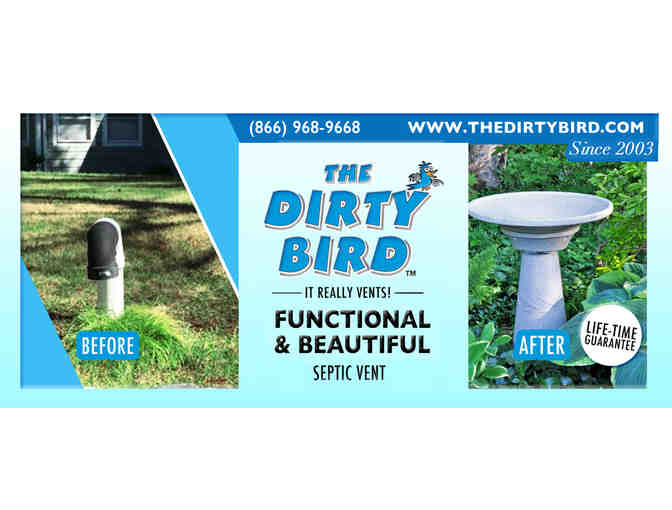 For nearly 15 years, The Dirty Bird has provided homeowners and contractors with an alternative to the standard septic vent required by many towns in new residential and commercial construction. Designed, engineered, and manufactured in the USA, the product is a septic vent shaped like a bird bath. Meeting all Environmental Protection Agency septic-venting regulations, it controls odors through a replaceable charcoal filter and vents gases through holes at the bottom of the pedestal, so nothing enters the septic system.