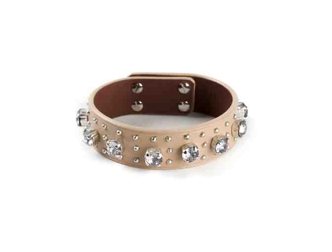 - Nude calf leather bracelet from Givenchy featuring gemstone embellishments, a silver-tone stud detailing and a twist lock fastening.