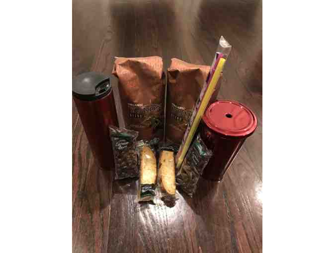 Get some Starbucks for home and also go to their stores with this $20 gift card, 2- 1lb bags of Yukon Coffee (whole bean), 1 coffee thermos, 1 coffee straw cup with 3 straws, 2 bags of dark chocolate covered espresso beans, and 2 biscotti.