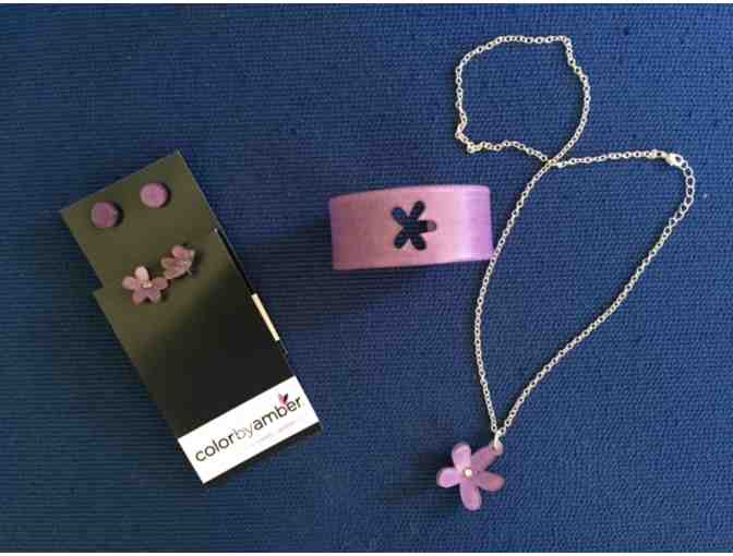 Color by Amber Kids Purple bracelet, earings, necklace. Made from recycled materials!