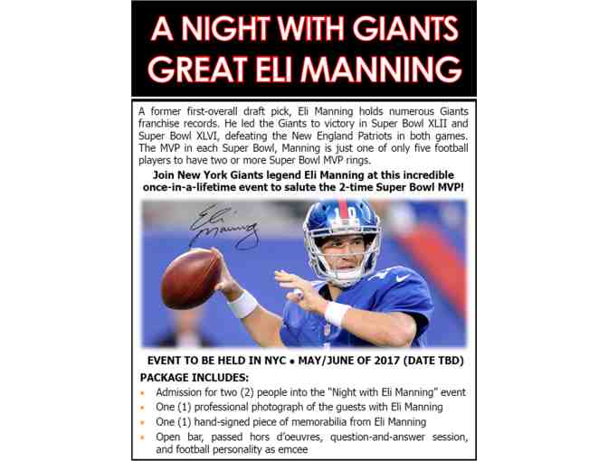 - Admission for two (2) people into the “Night with Eli Manning” event