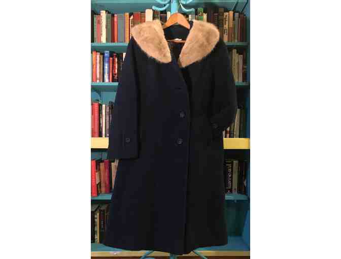 1950's Navy Wool Boucle Coat with Blonde Fox Trim