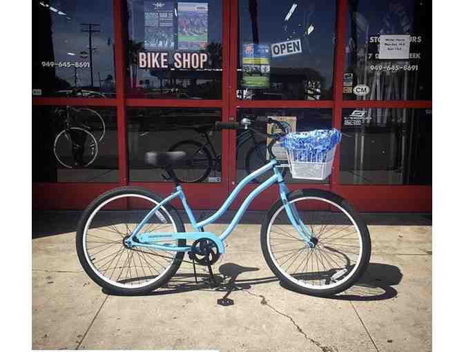 This beautiful light blue American Flyer Beach Cruiser includes a white metal basket, basket cover and matching bell!