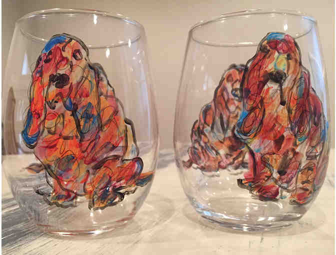 Handpainted Basset Hound Wine Glasses (set of 2)
