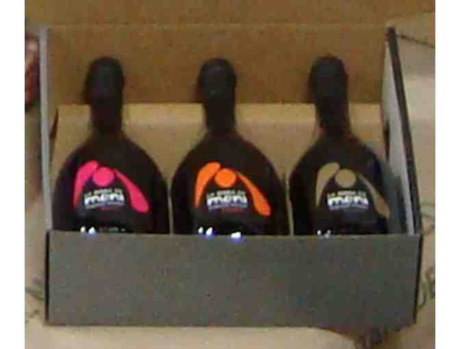 Rare La Birra di Meni 3 Bottle Gift Set includes 4 Stemmed TEKU glasses