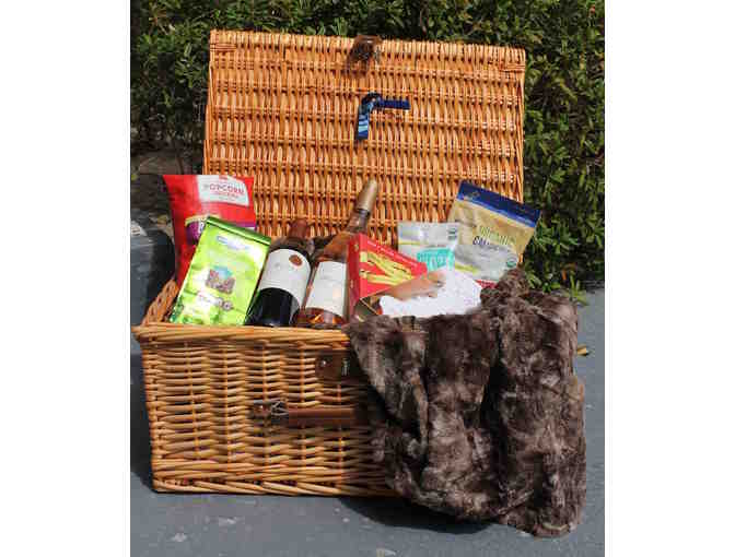 Head outdoors prepared for a relaxing afternoon reading, having a glass of wine and some "healthy" snacks on the comfort of a large fleecy blanket. Everything you need for a perfect afternoon is packed into a large, sturdy picnic basket.